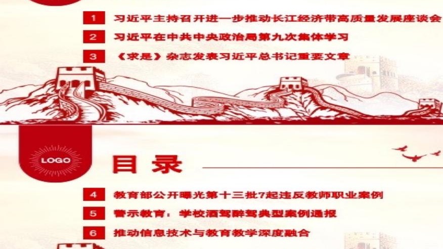 1.习近平主持召开进一步推动长江经济带高质量发展座谈会强调,进一步推动长江经济带高质量发展,更好支撑和服务中国式现代化
