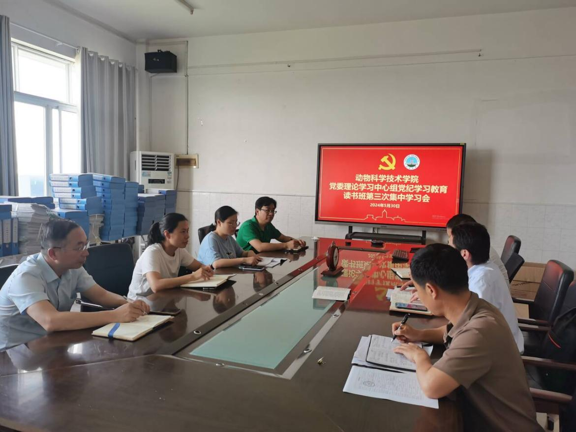 此次党纪学习教育第三次集中学习会由动医系教工党支部书记杨丰利教授带领学习《中国共产党纪律处分条例》第九章。随后由党委委员田光明教授带领学习《中国共产党纪律处分条例》第十章。最后,公司党委副书记孙恺带领学习《中国共产党纪律处分条例》第十一章。