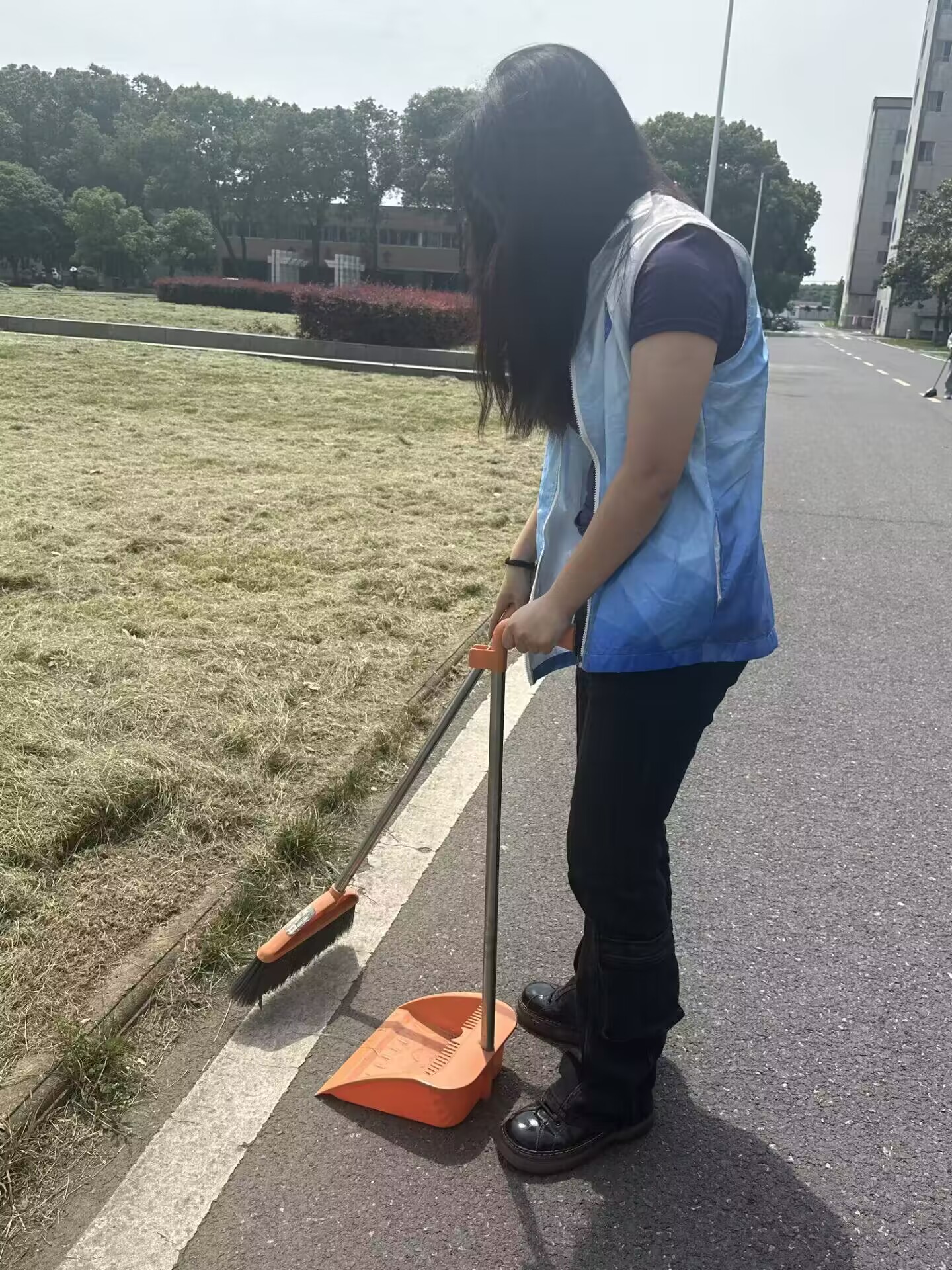 赵芯彤等活动负责人召集志愿者集合拍照后,对打扫区域进行了细致的分工,并带领志愿者对其进行细致全面的清扫。志愿者们不畏炎热,为公司的环境辛勤劳动,挥洒着自己的汗水。经过一个多小时的“奋战”,校园焕然一新。