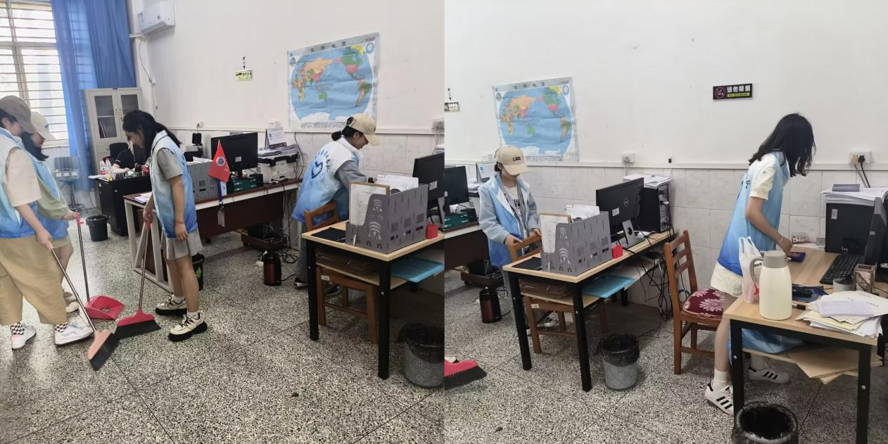 在整个劳动过程中,各个小组带着清洁工具前往其负责的区域,清扫地面及室内的各个角落,擦拭整理会议室内的桌面,清理遗留在桌洞的垃圾。每位同学都积极响应公司号召,饱含热情,挥洒汗水,为营造整洁明亮的环境献出自己的力量。活动结束后,同学们将清扫工具放置原处并将垃圾打包装运丢至垃圾桶内。对着焕然一新的会议室,每个人的脸上都露出了满意的笑容。