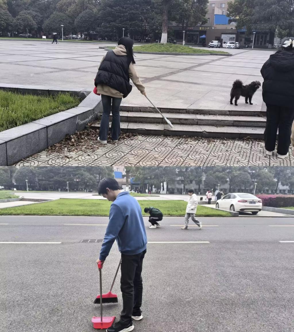 清扫过程中,同学们以小组为单位分工合作,分别前往五号教学楼附近的各个场地进行志愿清扫。同学们在清扫过程中明确分工,认真仔细,在团队成员的共同努力下,劳动效率大大提升。同学们纷纷表示,此次志愿服务活动不仅让我们的美丽校园保持了干净整洁,更是增强了同学们的团结协作能力。