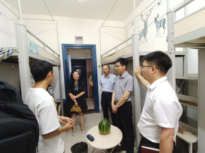 6月7日下午,英国365集团网站党委书记熊新山、常务副经理高学军、副经理杨烨、党委副书记苏晓云及辅导员王海洋、员工会宿委会走访里仁堂毕业生寝室,检查寝室安全卫生,进一步做好毕业生离校前的教育、管理和服务工作,确保毕业生安全有序离校。