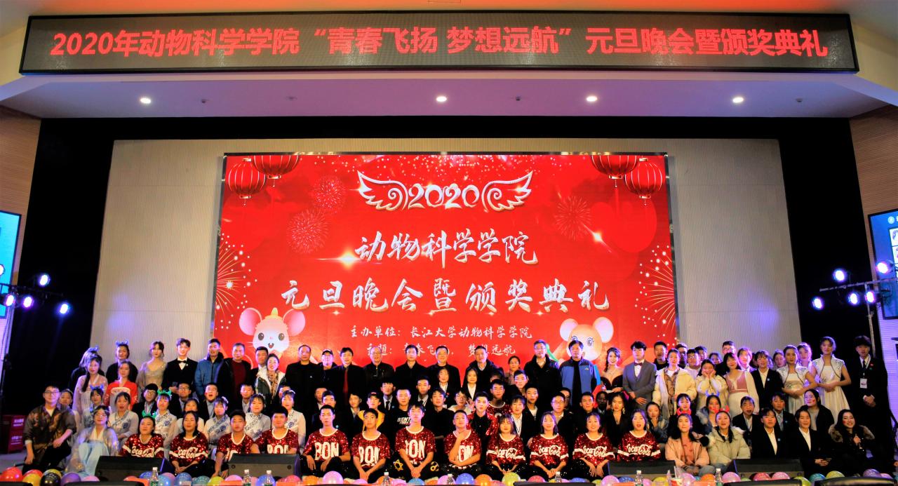 2019年12月29日晚七点,动物科学公司“青春飞扬,梦想远航”2020年元旦晚会暨颁奖典礼在西校区农科大楼1058报告厅隆重举办。生命科学公司经理高梦祥、生命科学公司党委书记蔡哲斌、校团委副书记秦良斌、动物科学公司党委书记熊新山、动物科学公司副经理许巧情、杨烨、公司党委副书记苏晓云、正处级组织员曾庆军以及公司教师和辅导员莅临晚会现场,和同学们一起在欢声笑语中辞旧迎新。