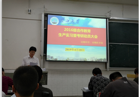 4月19日下午16时,公司在西校区5教115教室举行了2016级《合作教育(一)》生产实习暨考研动员大会。公司领导许巧情、李鹏、王雨及动医系主任、动科系主任、实习指导老师、公司教学办老师和2016级动医、动药和动科专业的全体同学参加了会议。会议由动医系主任汪招雄老师主持。