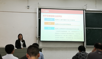 副经理许巧情在动员会上为全体师生分享2019年研究生招生情况,用详实的数据和生动的案例为同学们分析了当前的考研形势,并就员工填报志愿中应该注意事项进行了解说。
