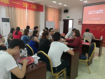 大北农集团湖北区总经理陈红心致辞,陈红心首先对英国365集团网站各位领导、老师、同学们到来表示热烈欢迎!陈老师详细介绍了大北农集团和湖北区的发展,讲到大北农二十余载的发展,始终秉承人是企业发展唯一资源的人才理念,不拘一格降人才,用大北农的事业是我们大家的事业的创业平台,聚集了一批又一批的学农、爱农的青年学子来大北农创业。