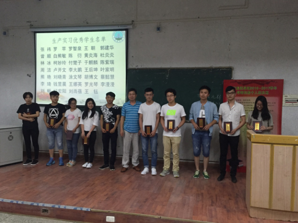 在生产实习总结环节,优秀实习生代表于麒麟同学、李琦同学和同学们分享了实习经验,王雨副书记对优秀生产实习生进行了表彰,汪招雄副教授进行了生产实习总结。