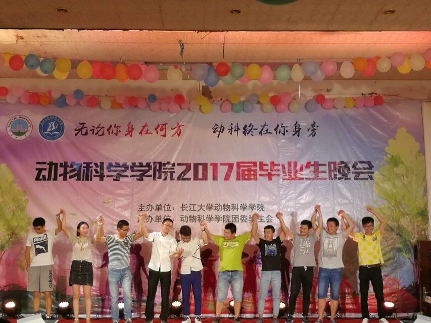 (通讯员余平杨秋凤) 6月8日晚上7时许,动物科学公司2017届毕业生欢送晚会在西校区一教七楼顺利举行,参加此次晚会的有动科公司党委副书记王雨、动科院各级辅导员及即将毕业的大四员工及部分班主任代表。