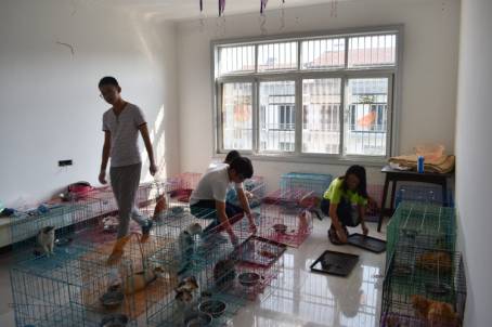 上午7时许,青支队成员来到收容所,远远便可听见阵阵猫叫。由于一晚上的门窗紧闭,空气中弥漫着刺鼻气味,志愿者们迅速展开工作,为这些被解救回来的小猫们打扫卫生、喂食。