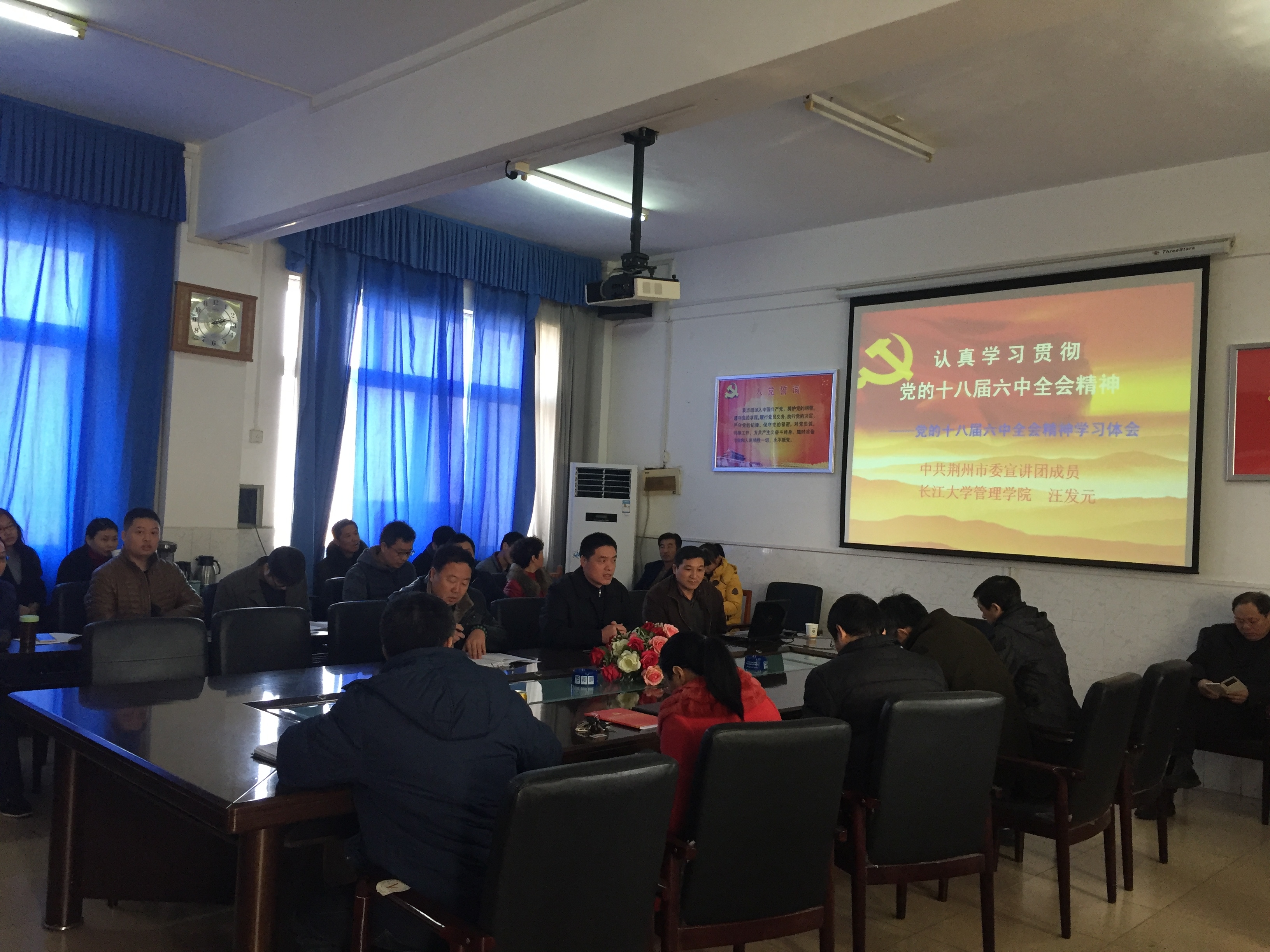 最后,王凌华书记为报告会作总结:汪发元教授的报告对我们深刻理解、准确把握十八届六中全会的精神实质有很好的指导作用,希望全体党员以此报告会为契机,继续深入学习十八届六中全会精神,争做优秀党员。
