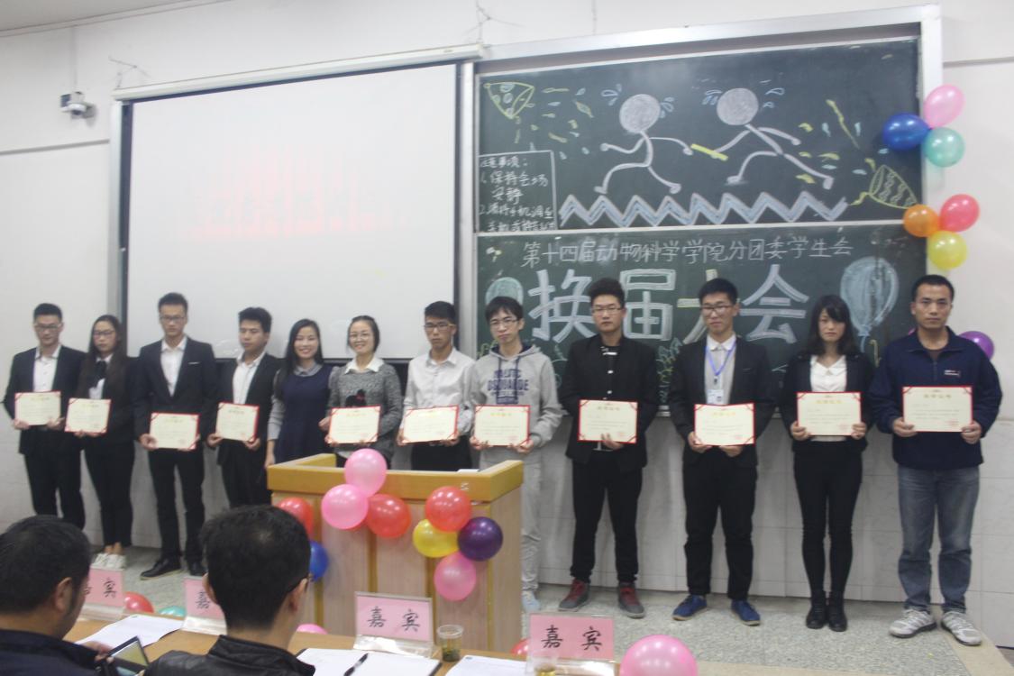 “老干部”的离任与“新干部”的接替,动物科公司分团委员工会每个成员都会牢记服务院系师生的使命,团结进取,创造新辉煌。最后主持人宣布本次换届大会圆满结束。