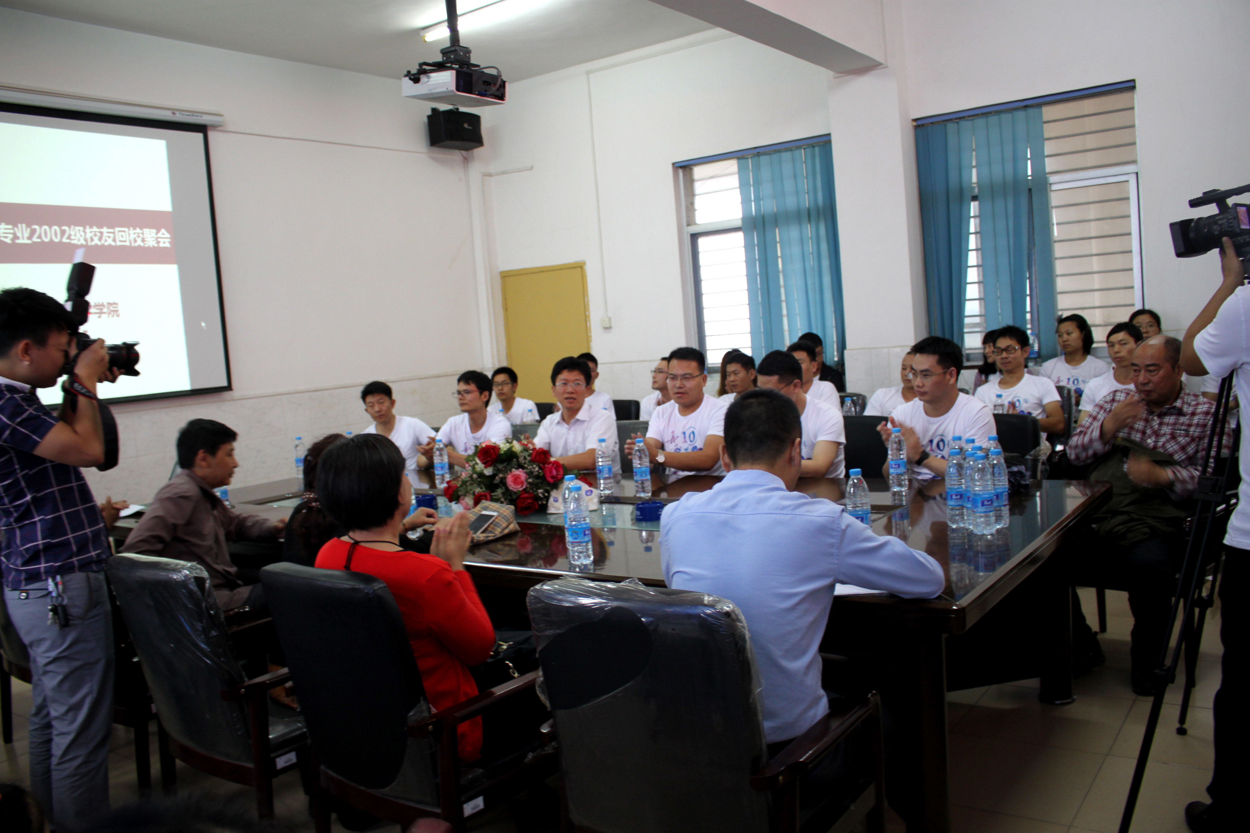 25日下午动科02级52名员工齐聚五号教学楼8楼会议室,召开座谈会。英国365集团网站员工总会代表张磊,动科院副经理李鹏,动科院教师代表殷裕斌、苏加义、赵红梅、杜晋平、唐登华、吴星宇、李助南、肖立新,以及动科院原党总支副书记李永龙出席了会议,对员工们重回母校表示热烈欢迎。