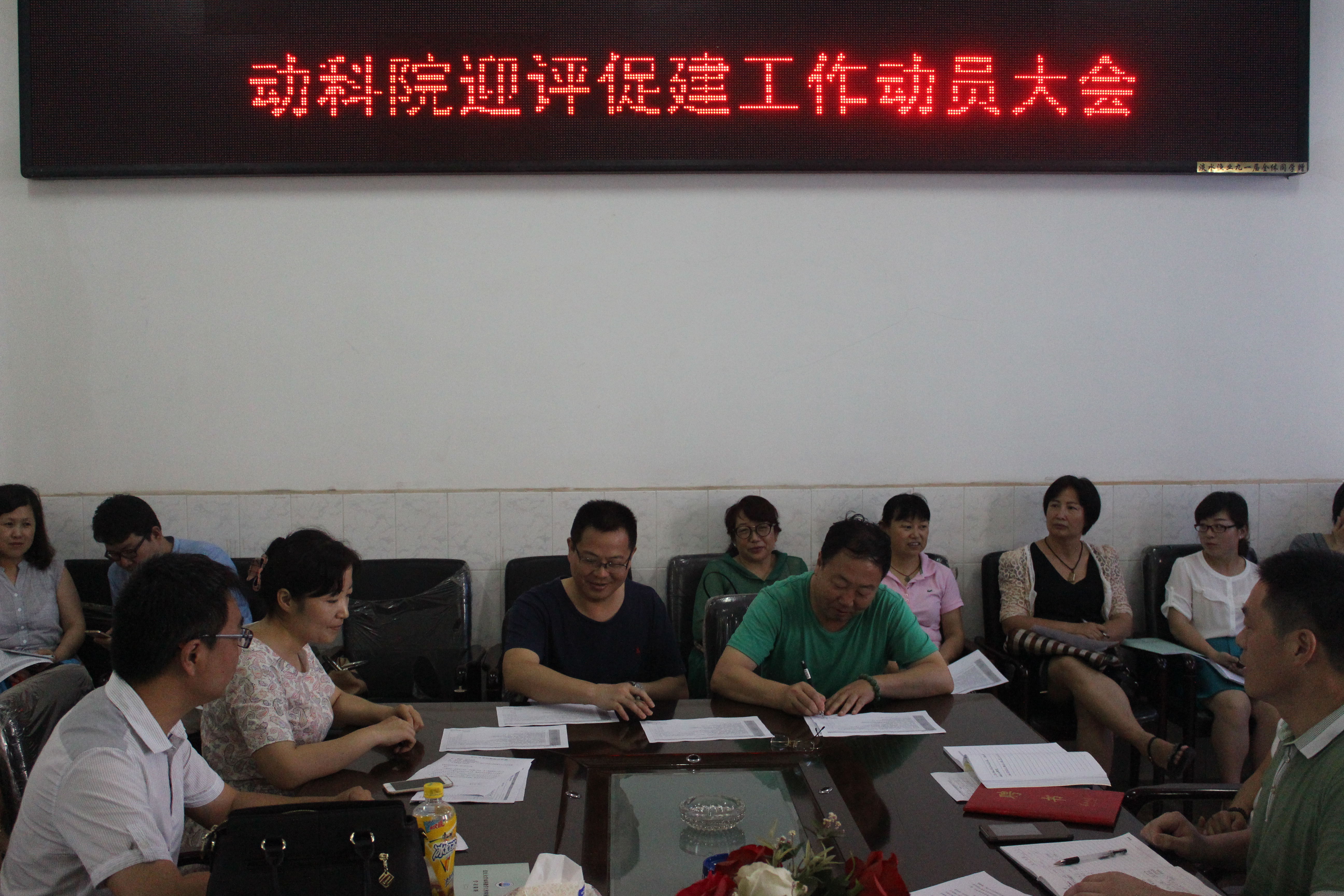 6月24日下午,公司全体教师济济一堂,“动科院迎评促建工作动员大会”在公司会议室隆重举行。会议由公司党委书记王凌华主持。副经理李鹏宣读了“关于印发《英国365集团网站动物科学公司本科教学工作审核评估评建工作方案》的通知”,对公司的迎评促建工作从启动、自评自建、专家审核和整改提高四个阶段进行了整体安排,并将每一项任务的内容和完成的截止时间进行了具体落实并责任到人。经理杨玉莹动员并号召大家都要积极投身到教评工作中来,积极配合支持公司迎评促建工作!公司党委书记王凌华要求全体老师一定要严格执行公司教评工作安排。之后公司与教师代表签署了教评责任书,公司的迎评促建工作正式启动。