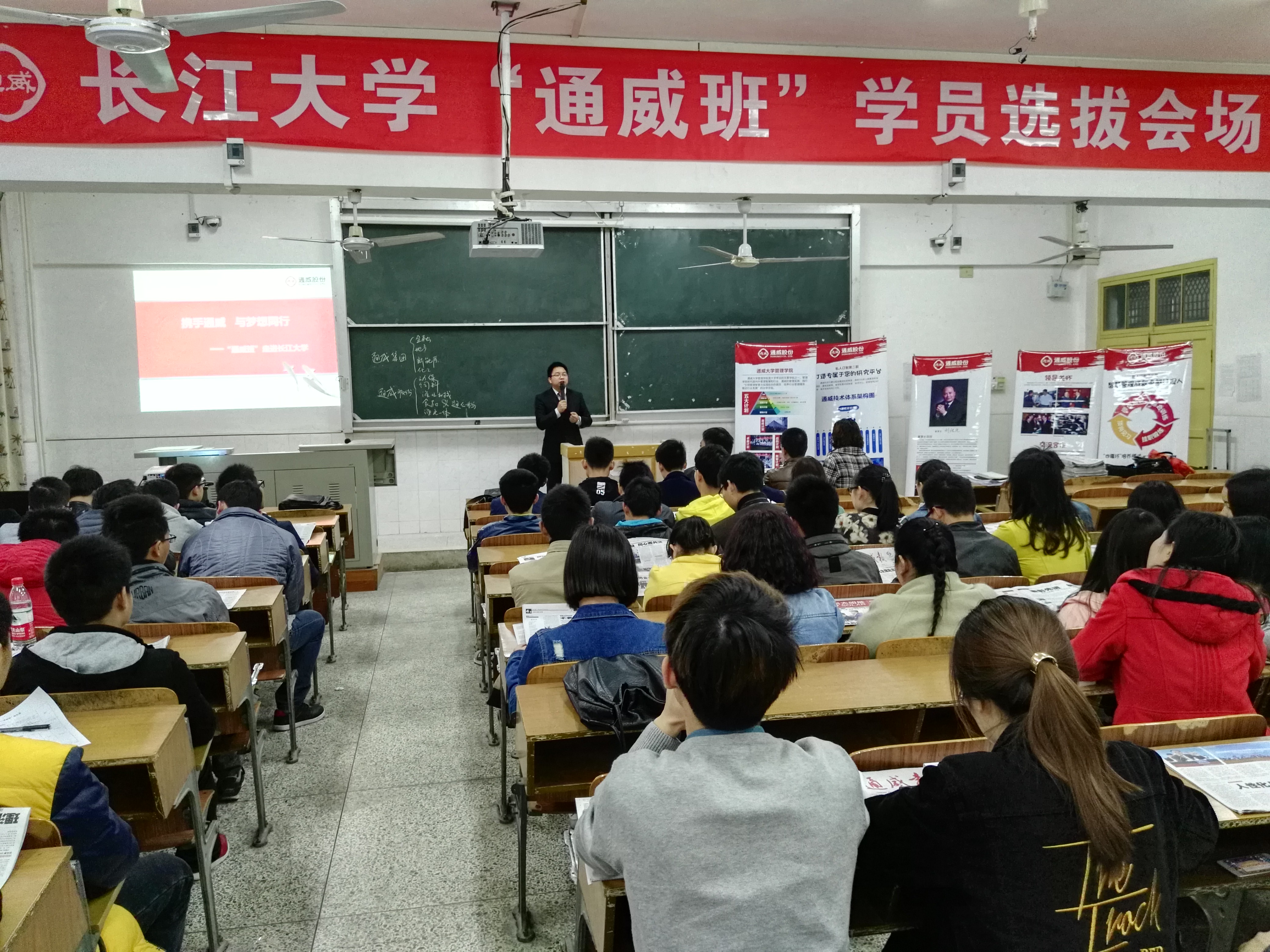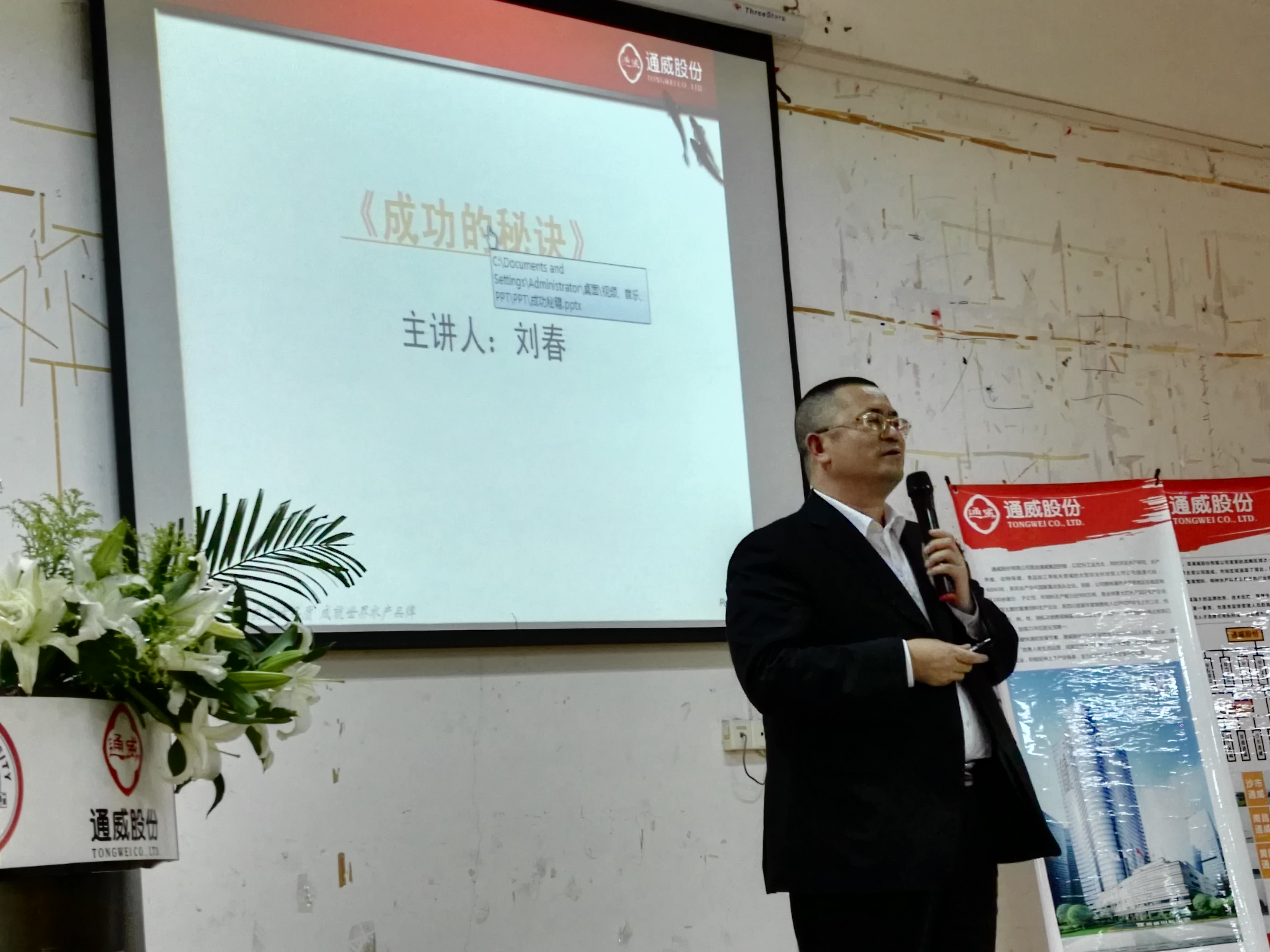沙市通威总经理刘春结合自己亲身经历讲授《成功的秘密》。开始了通威班的第一课。