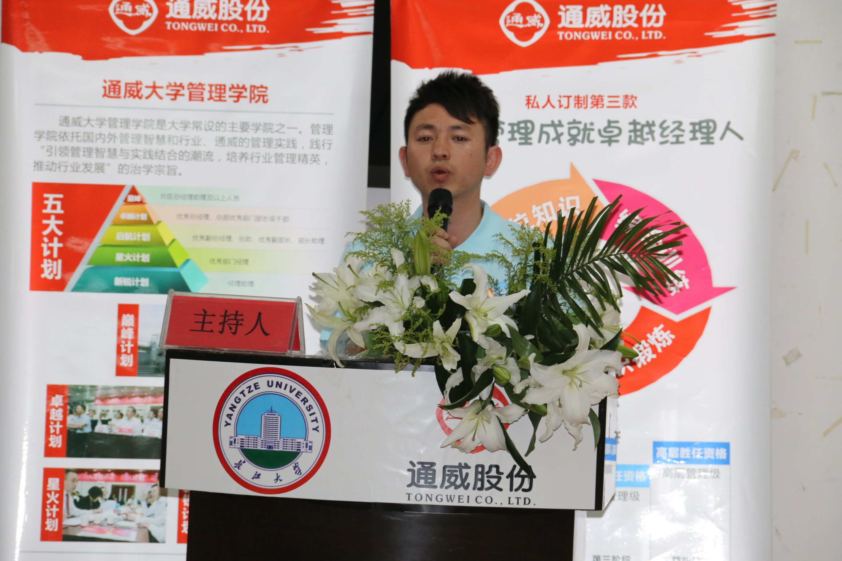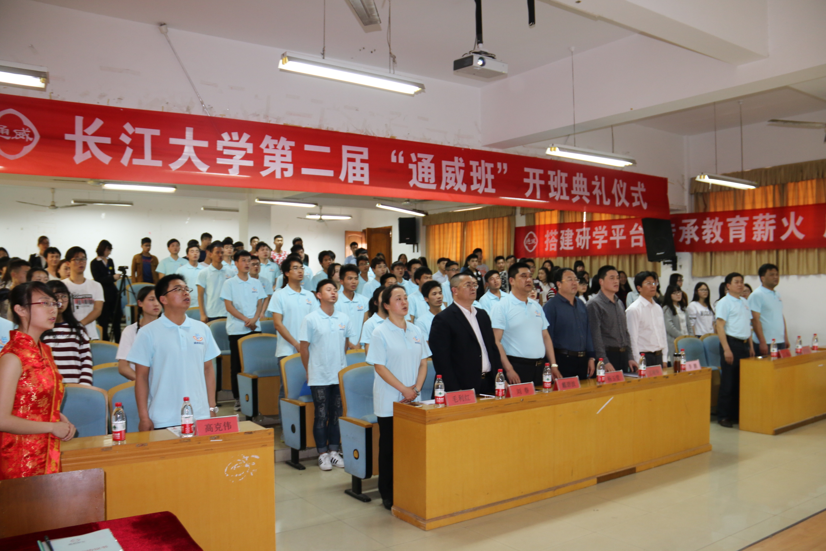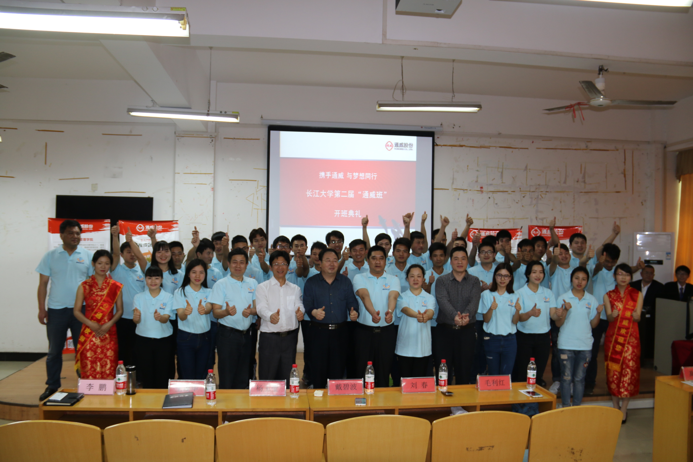"我们通威人共同创明天,携起手肩并肩不怕困难",开班典礼以班歌《我们通威人》拉开序幕!