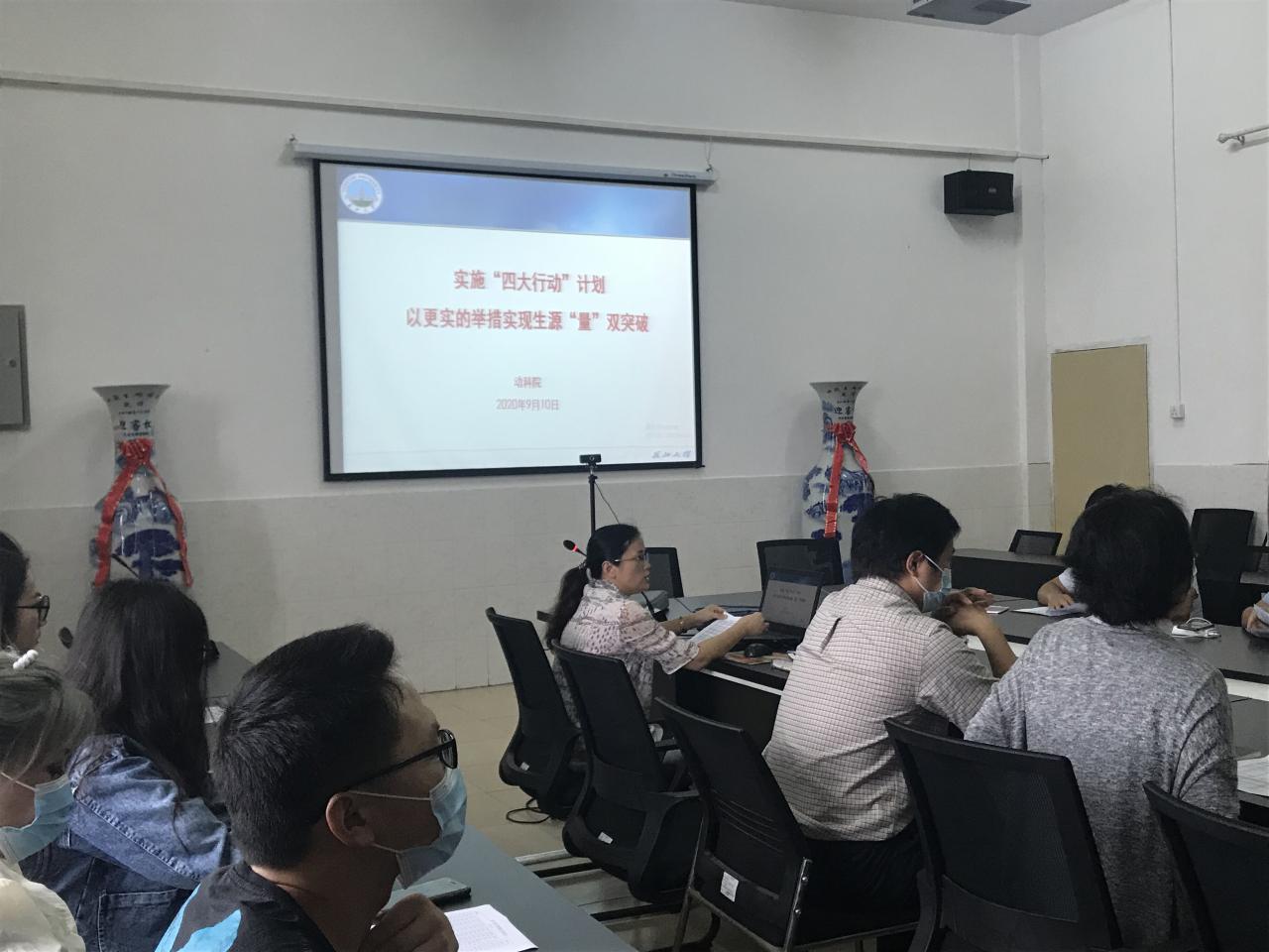 会上,每名参会员工就有关考研意向及考研中遇到的问题进行了单独发言,与会的导师对员工提出的疑问耐心解答。动物医学系主任田光明老师,水产系罗鸣钟老师及动物科学系杜志强老师,向员工们分别介绍了三个专业硕士生导师的科学研究情况,会后员工主动与自己感兴趣的导师进行了面对面交流。