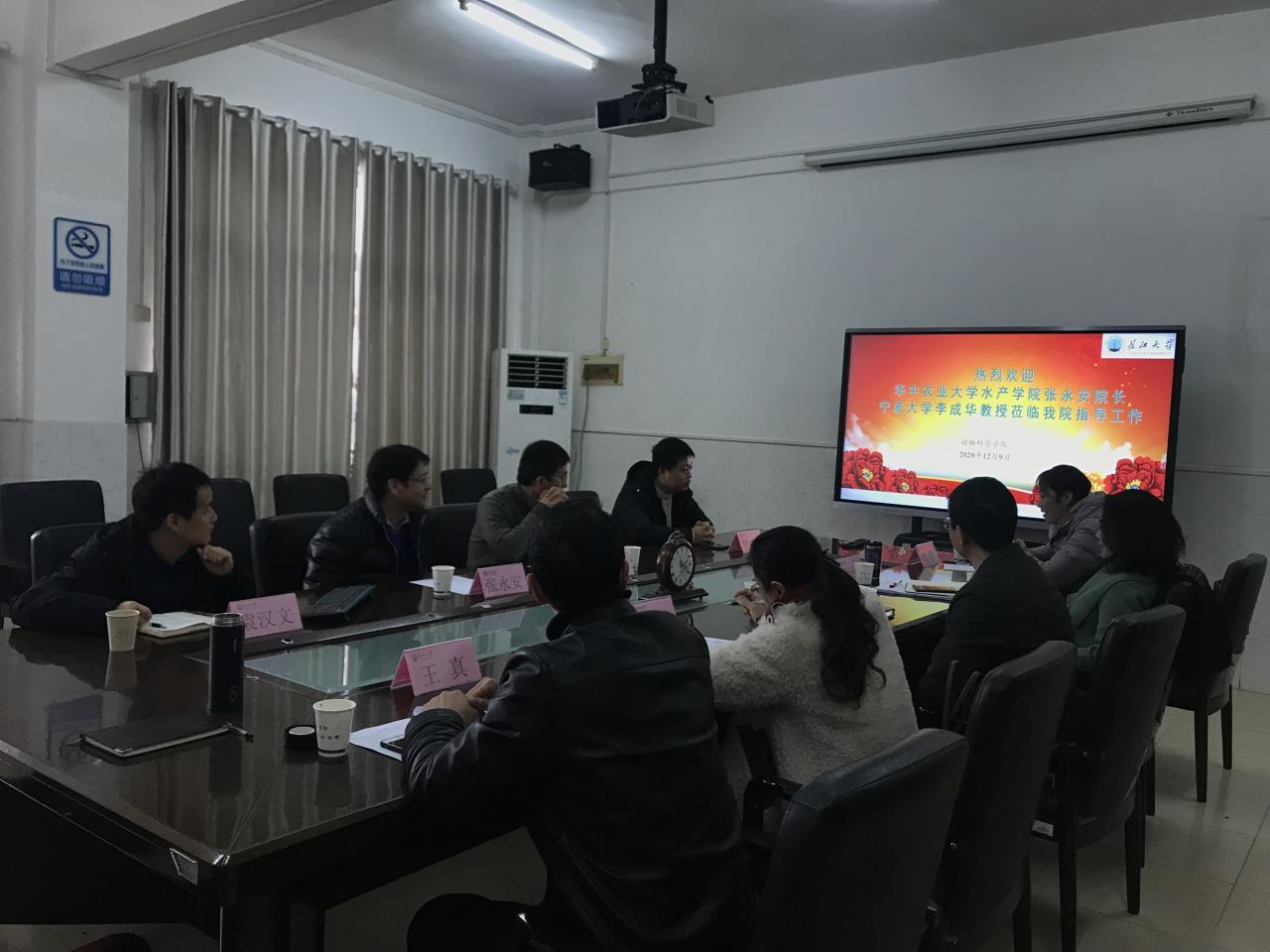 在调研会上,张永安、李成华两位专家详细介绍了目前全国高校水产学科参加第五轮学科评估的情况,分析了第五轮学科评估与第四轮学科评估的差异,分享了第五轮学科评估不唯体量、只看特色、重点关注代表性和典型性成果等新动态。两位专家还重点指出了参与此次学科评估的积极意义-----第五轮学科评估是总结人才培养质量、团队队伍建设水平、科研成果和社会服务成效的一次绝好机会,有助于我们凝练水产学科特色和方向,找出自己发展的短板,以评促建,以评促改。为此,两位专家真诚希望公司积极参与本轮学科评估并取得好成绩。熊新山代表公司热烈欢迎两位专家来公司就学科评估及专业建设工作指导交流,在介绍了公司基本情况后,与两位专家就公司水产专业建设中面临的相关问题进行了深入探讨;许巧情向两位专家介绍了公司水产养殖学专业发展历程及优势,汇报了公司为参加本轮学科评估做的相关准备工作;衡艳林副处长向来访专家介绍了公司一级学硕点现状以及第五轮学科评估准备情况,并表示发规处全力支持各个学科的发展和评估。