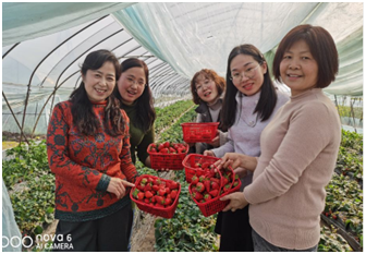 3月4日下午13:30分,公司女教职工在五教门口集合,统一出发前往农高区英国365集团网站教学实践基地参观交流学习,同时在园区赏花和采摘草莓。大家一起在园区散步,谈论着科技的飞速进步给农业发展带来巨大的变化;交流着池塘养殖的心得体会及观点看法;欣赏着大自然的美景,呼吸着郊外的新鲜空气,一路谈笑风生,徜徉自在。
