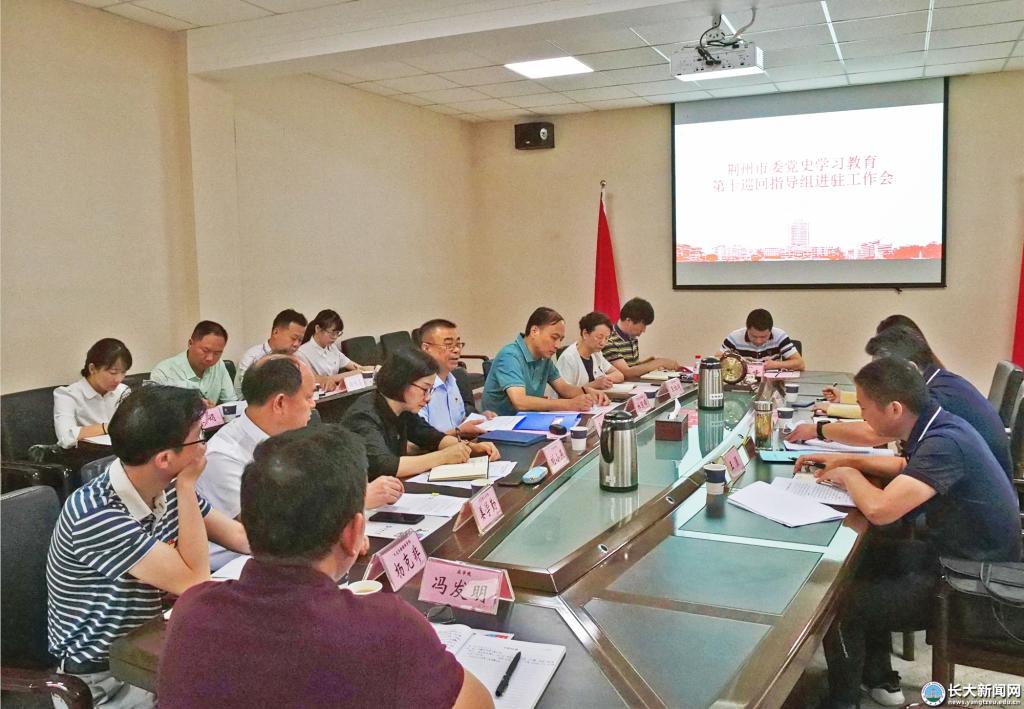 新闻网讯(记者 张晨露)6月18日上午,荆州市委党史学习教育第十巡回指导组进驻工作会在6教316召开,指导组组长、市教育局副局长刘立富一行来校召开座谈会,并实地查看民生实事项目。会议由副董事长周从标主持。