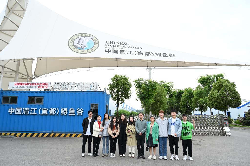 此外,许巧情教授带领研究生参观了投资10亿打造的宜都鲟鱼谷,鲟鱼谷现有鲟鱼品种数十种,数量近100多万尾,生物资产储备量达6000吨。大多为原清江库区网箱上岸的鲟鱼。其中,不仅有常见的俄罗斯鲟,还有纯种欧洲鳇、达氏鳇等品种,养殖的鲟年龄高达20余龄。预计做出百亿产业链。通过参观考察,开阔了研究生视野,坚定了深入研究的信心。