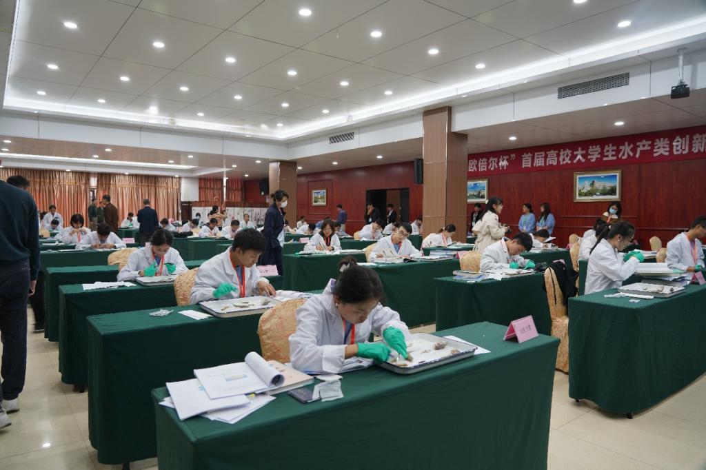 本届大赛由中国水产学会全程指导,中国海洋大学和中国农业出版社主办,水产科学国家级实验教学示范中心(中国海洋大学)和中国海洋大学水产公司承办,是面向全国高校的首个水产类创新实践能力大赛。本次大赛以“融合创新,引领水产业高质量发展”为赛事主题与理念,全面贯彻了“以赛促学、以赛促练”的实践教学模式,通过各个比赛项目充分检验了参赛选手的水产专业水平。