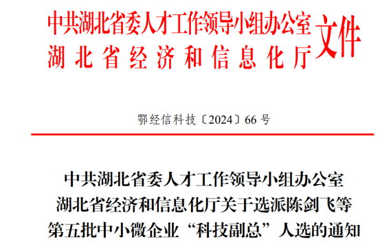 为全面深入贯彻落实党的二十大精神,推动创新链、产业链、资金链、人才链深度融合,强化企业科技创新主体地位,自2020年起,湖北省委人才工作领导小组办公室,从省内各高校和科研单位选聘具有副高级以上职称、专业素质较高、创新成果突出的优秀人才到企业担任“科技副总”,帮助企业解决生产和技术难题。