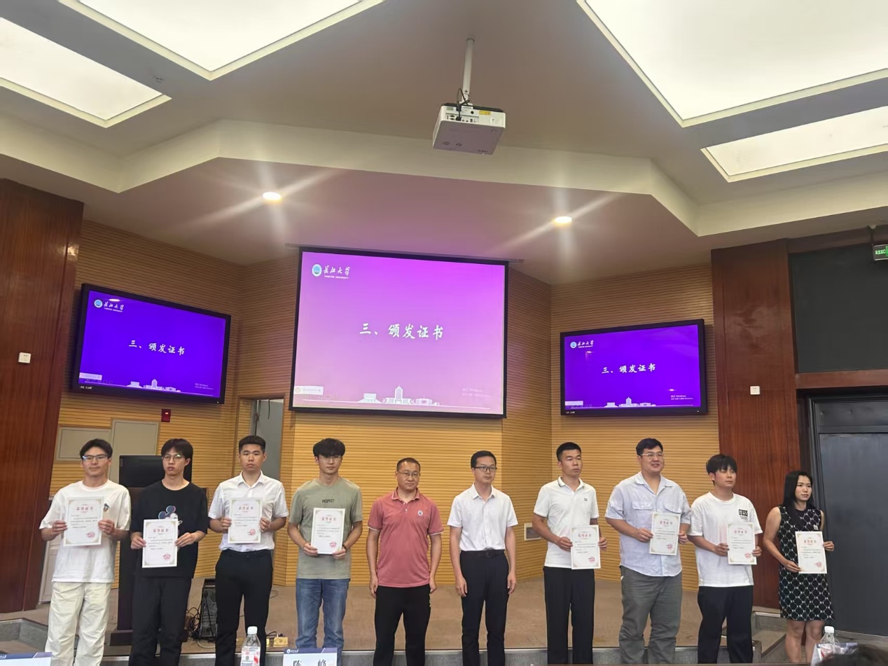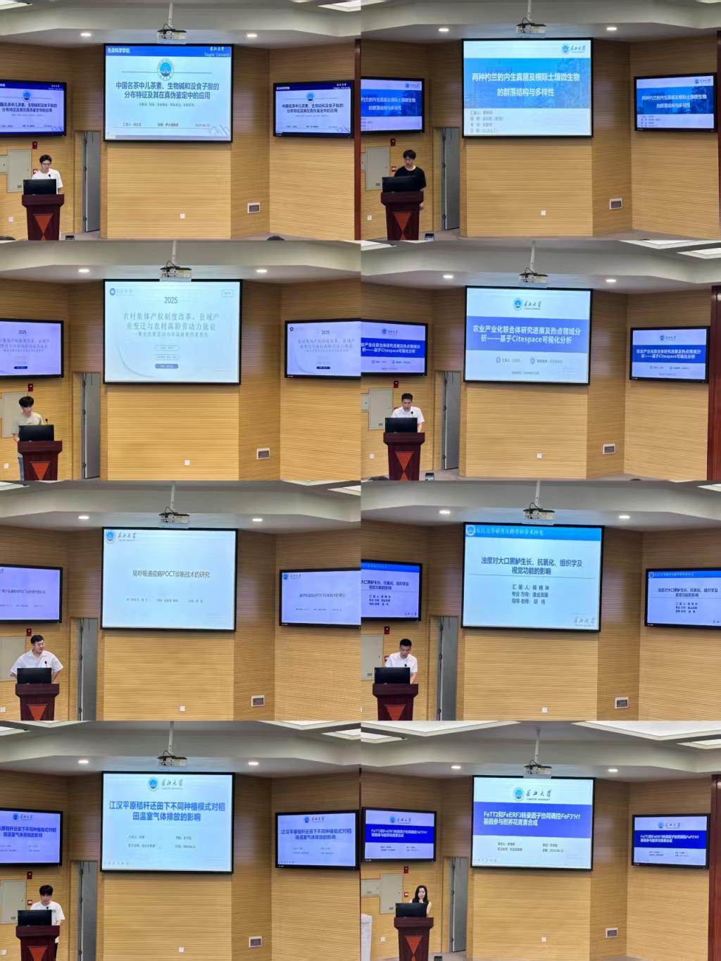 罗旖柔在前期对于两种不同花色甜荞转录组学研究的基础上,克隆出与甜荞花青素合成相关的候选基因FeTT2。推测FeTT2和FeERF3两者形成一个模块,协同调控FeF3'H1基因参与甜荞花青素的合成。何锋探讨了秸秆还田下6种稻田种植模式,分析秸秆还田下不同模式对温室气体排放的影响以及与环境因素的关系。杨艳林通过探究不同浊度下对大口黑鲈生长、抗氧化、组织学及视觉功能的影响,优化养殖水质管理,调控浊度,缓解水体负担,降本增效,为大口黑鲈养殖提供科学依据,提升养殖品质。张千通过对猪呼吸道疾病综合征(PRDC)的诊断体系构建,讲述了精准诊断对PRDC的重要作用,对猪呼吸道疫病POCT诊断技术进行了深入研究。王其东基于citespce可视化分析对农业产业化联合体的当前研究进展和热点领域进行了剖析。章非凡探讨了通过促进次要劳动力市场培育,改善农村高龄劳动力就业质量,对于维护基层社会稳定和应对农业人口结构老龄化挑战具有的重要现实意义。鄢仲圻以神农架的扇脉杓兰和绿花杓兰为研究对象,探究其内生真菌及根际土壤微生物群落结构和多样性,旨在丰富植物内生真菌资源认知,明晰其与两种杓兰的关系,为野生兰科资源保护繁育提供参考,支撑兰科植物保护实践。何正云研究了中国名茶中特征成分的分布特征并建立真实性鉴定方法。为绿茶的质量评价和真伪鉴定提供了有效的分析策略和理论基础。由英国365集团网站陈峰老师、经济与管理公司姚志老师共同为八位主讲人颁发证书并合影留念。