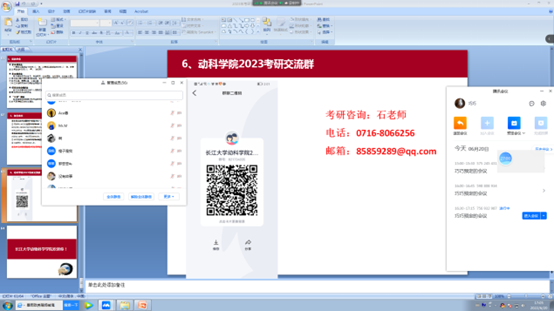 为了提高研究生招生数量,提升第一志愿报考率。2022年6月20日下午许巧情教授利用腾讯会议(756 932 987)对贵州铜仁公司和山西晋中公司开展2023届研究生招生宣讲。