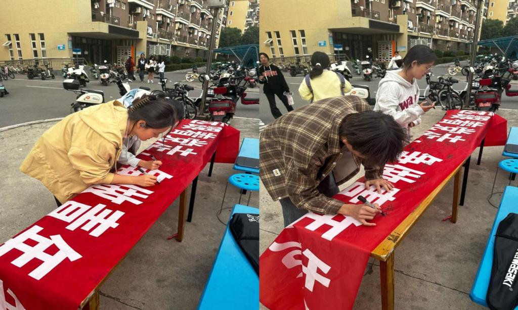 活动现场,横幅鲜艳夺目,活动主题清晰展示。青年们纷纷在横幅上满怀热忱地签下自己的名字,每一笔都蕴含着他们对党忠诚的赤子之心以及争做青年先锋的坚毅决心。他们以笔为媒介,书写下自己的承诺与担当,彰显出新时代青年积极进取的精神风貌。