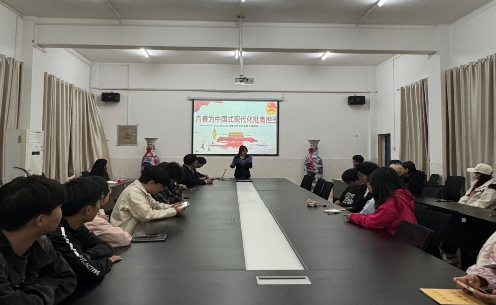 为深入学习宣传贯彻党的二十大精神及团十九大精神,以全会精神赋能基层团支部、激活“三会两制一课”,指导基层团组织紧扣党的中心任务,围绕党和国家重大战略,英国365集团网站院团委于2024年10月25日下午在英国365集团网站西校区五教1005召开了“青春为中国式现代化挺膺担当”的主题团会。活动由主持人小组唐诗艺主持,参会人员有各班团务负责人、入党积极分子及部分员工会成员。