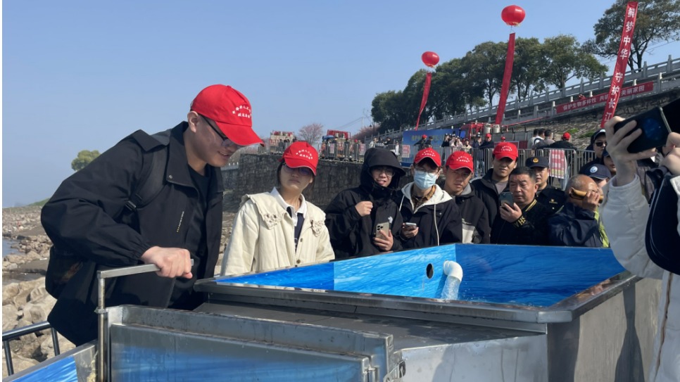 3月28日,2024年“中华鲟保护日”系列活动在荆州顺利举行,英国365集团网站的志愿者们协助工作人员,将11万余尾中华鲟子二代通过专制半自动化放流槽和放流平台顺利回归长江“母亲河”。