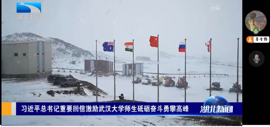 其次,导员刘熙给我们介绍了武汉大学驻南北极科考站的两位队员,他们分别是中国第39次南极科学考察队员杨元德和中国第37次南极科学考察队员麻源源,其中麻源源的三年博士生涯一半都在南极,共计553天。恶劣的气候条件并不能成为追求科学路上的阻碍,正是这样的环境,锻造了他不畏惧自然条件的坚韧品格,一心专注于极地科研事业。这样的精神让小组成员们备受感动。