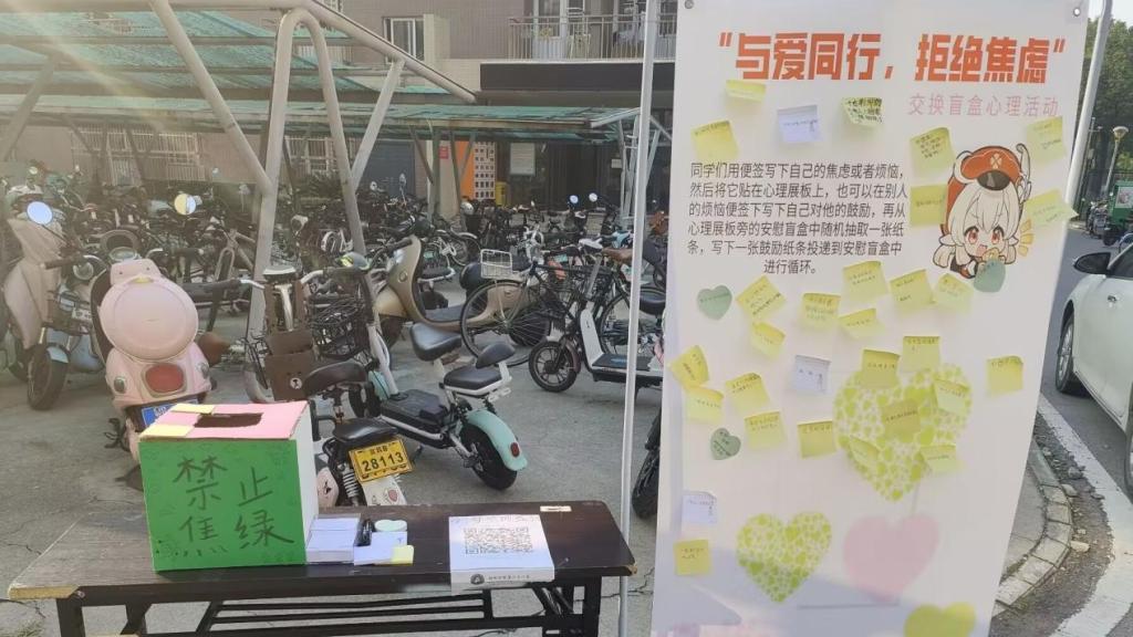 活动开始前由心育部的部员写下若干鼓励的暖心的便签放在盲盒中,提前布置好活动现场由心育部部员轮流值班管理好现场。