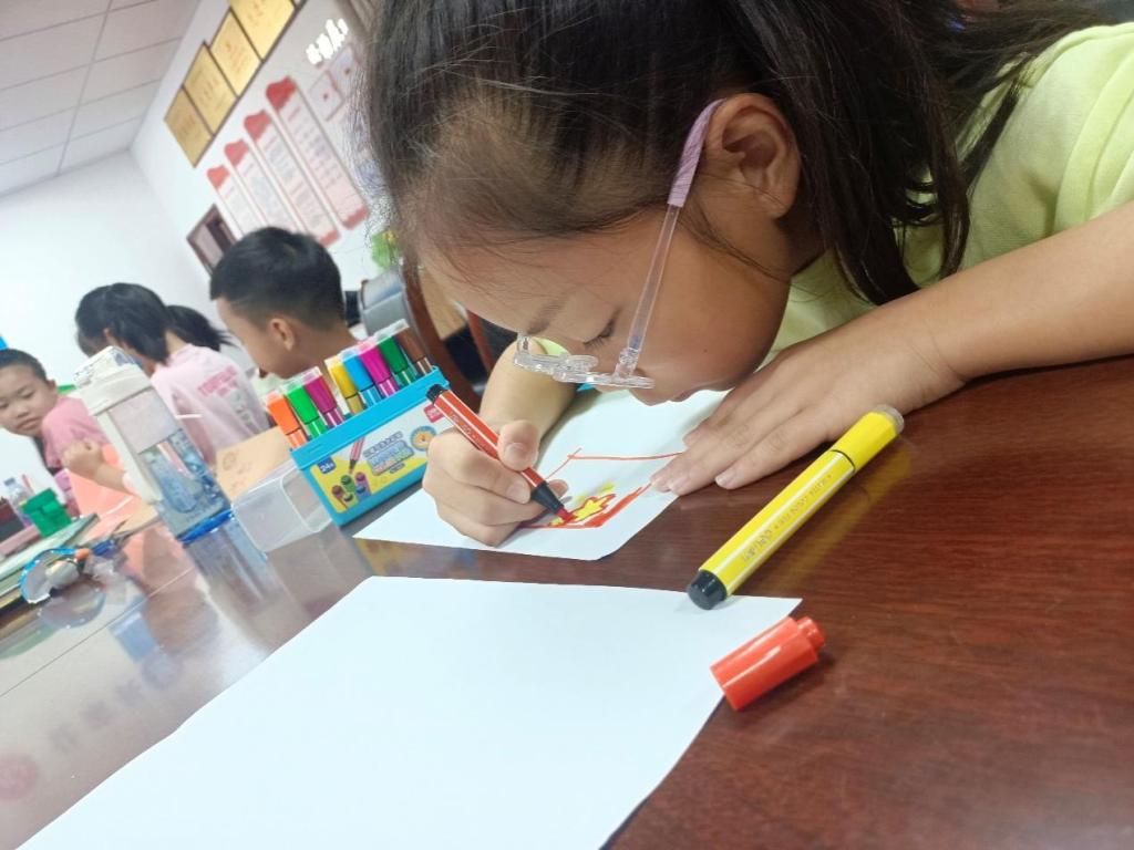 活动现场,志愿者通过进行红色知识问答,让小朋友朗读红色英雄事迹,观看红色故事视频,站立合唱国歌,学习绘制党旗国旗这五环节,让小朋友们深入了解红色精神,将爱国情怀根植到孩子们心中。知识问答环节,小朋友们认真倾听并积极举手回答问题,志愿者也耐心细致的进行讲解和引导。当志愿者问道“我国陆地面积是多少时”,小朋友们面面相觑,知道答案是960万平方千米后,不少小朋友一脸震惊和自豪。志愿者们通过问答这种方式,普及红色知识,培养小朋友的爱国主义情感。