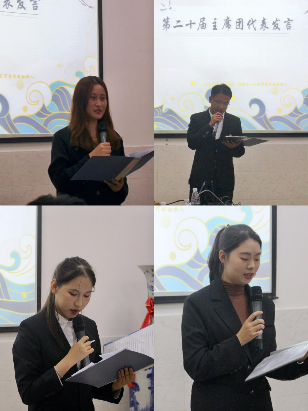 第三项由第十九届员工会主席团代表王珏发言,她以自己在员工会的工作心得为出发点,虽身兼数职,但从未“摆烂”,在校、院两级员工组织任职期间,自己如何加强沟通与合作,最终达到共赴完满之路,他用踔厉奋发、笃行不怠的姿态展现出动科人的青春风采;第二十届英国365集团网站团委员工会主席团代表董天舒希望大家学以致用,学用相长,并将小我融入动科院的大我,与时代同步伐,与人民共命运,才能更好的实现人生价值;第二十届团委员工会部长代表黄婉月告知大家“在员工会工作要端正作风,抵制官僚主义要找准位置,树立强烈的责任感;狠抓基础工作,不断优化,紧跟时代步伐”;部员代表周辰表示会以饱满的热情投入到工作当中,秉持初心,不断突破自我并成就一个全新的自我。