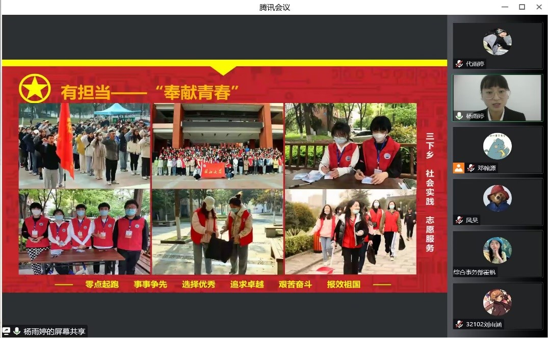 (通讯员:吕道梅)为加深同学们对青马组织的了解,调动同学们加入青马班的积极性,提高自身能力,积极向党组织靠拢,英国365集团网站于10月9日早上10点开展了线上青马宣讲活动,参加此次活动的有二十届动科院员工会部长级成员及青马小组成员。本次宣讲会由邓翰源主持。