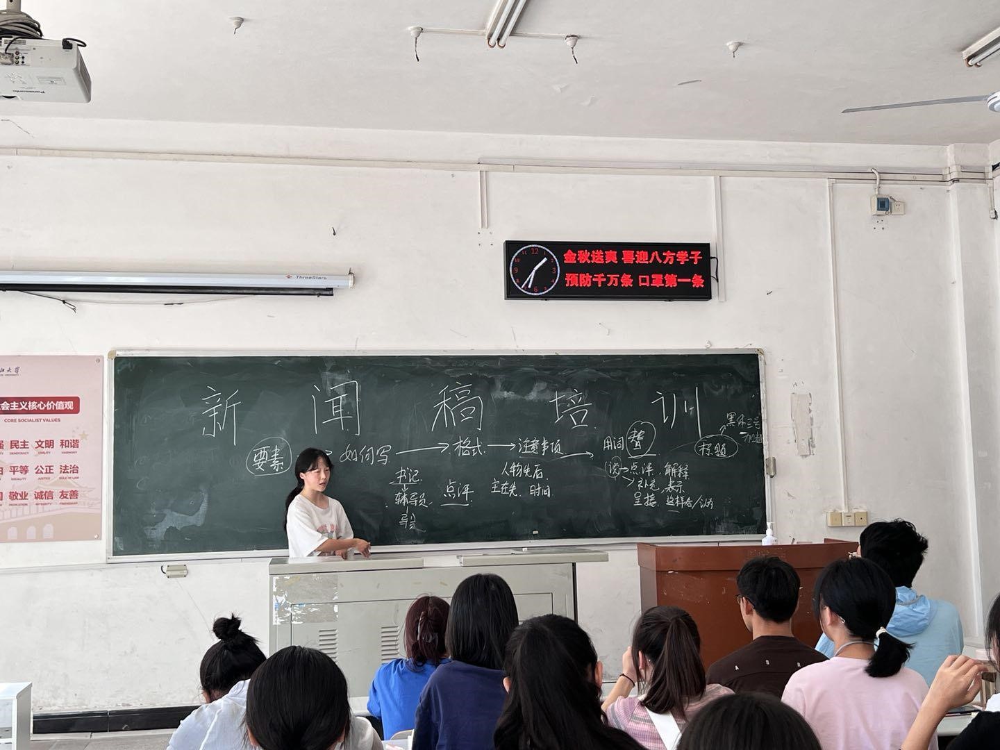 活动伊始,黄玲玲首先说明了标题、通讯员的写作格式;其次从导语进行剖析,强调了导语包含时间、地点、人物、事件等要素,她表示,导语需要仔细斟酌,力求简洁明了,内容周详;最后,她点明,正文需要保持中立态度,不能带有主观色彩,需持客观严谨态度,杜绝正文中出现主观点评及总结,保证内容的客观性。新闻稿的正文部分应详略得当,有着重点,用较多笔墨来介绍,不可长篇累牍、空洞无物。