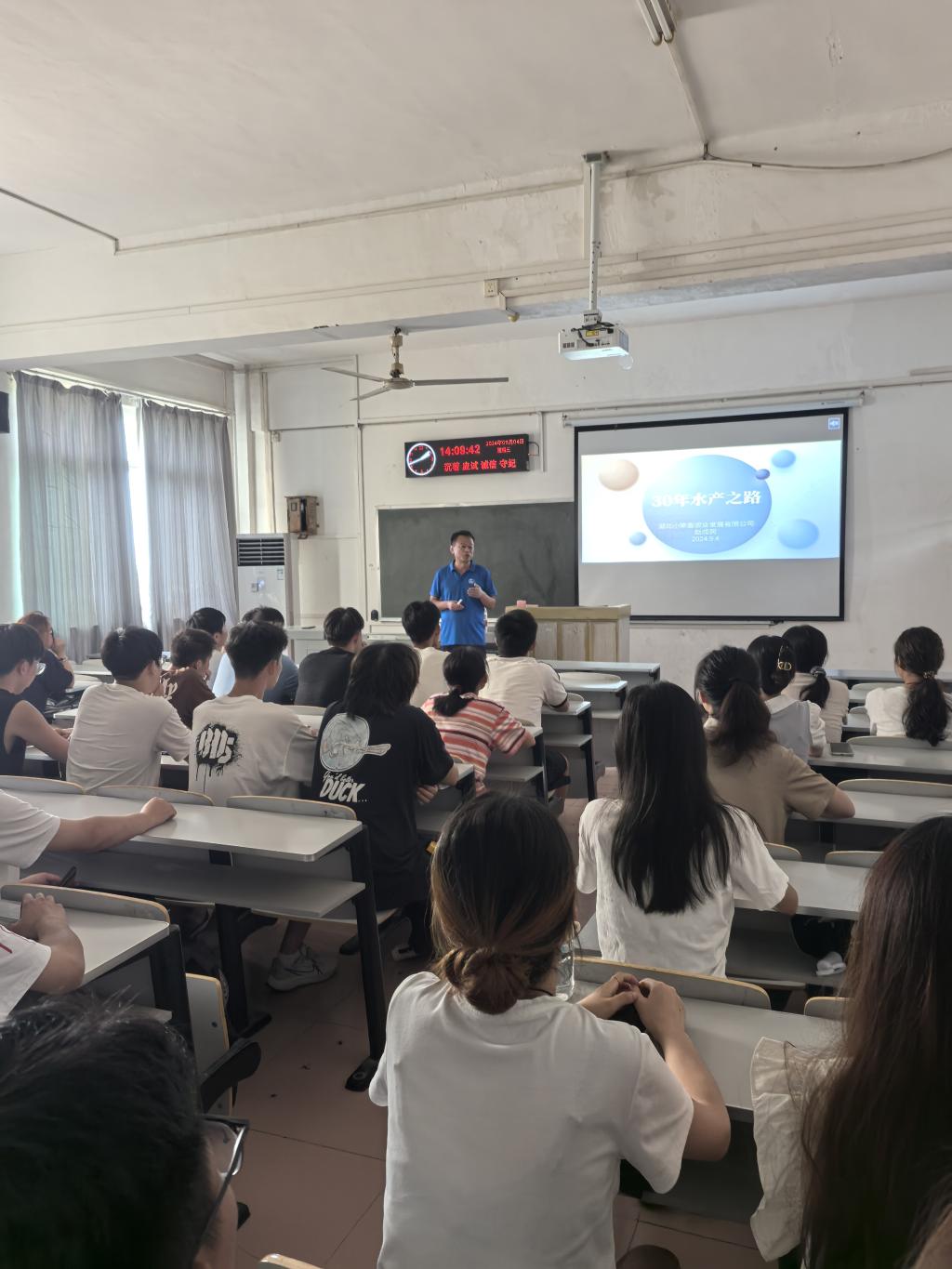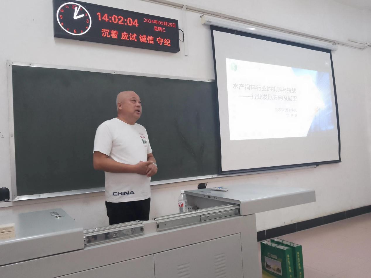 为帮助员工更好的了解农牧行业发展现状及企业用人选人标准,提高员工专业认识,做好员工学业及职业规划。自本学年开学初,公司每周邀请一位农牧行业代表人物来校为公司学子授课。他们分别是青岛玛斯特生物湖北市场销售总监李涛、湖北小笨鱼农业发展有限公司董事长赵成民、荆州海大饲料有限公司销售总监胡雄、上海康农发水质生态工程有限公司董事长潘宝中、荆州益农饲料有限公司董事长鲁开新、天门通威生物科技有限公司总经理胡生华、通威集团湖北海壹饲料有限公司销售总监熊维锋。