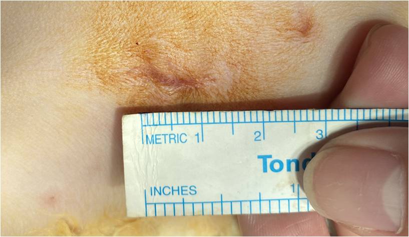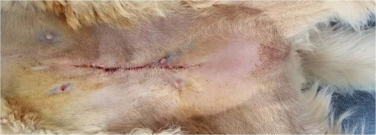 | 2021年4月21日荆州某医院转诊来的猫绝育术后感染病例(手术切口6CM) |