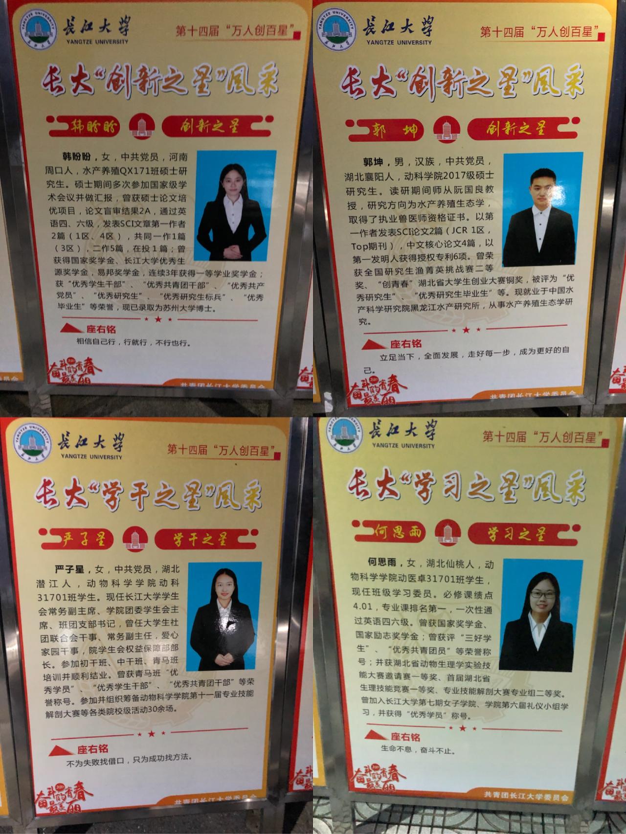 (通讯员 鲁文明)建功新时代,奋斗做先锋。为了深入推进“三全育人”,引领青年老员工树立远大理想全面发展个性特长,争做情操高尚、身心健康、学业优秀、特长鲜明的新时代老员工,经广泛宣传、个人自愿申报、公司认真审批和公司团委严格筛选,公司4名同学在英国365集团网站第十四届(2020)“万人创百星”活动中脱颖而出,荣获“长大之星”荣誉称号,分别是动医卓31701班何思雨获得“学习之星”、动科31701班的严子星获得“学干之星”、水产养殖QX171班硕士研究生韩盼盼获得“创新之星”、2017级硕士研究生郭坤获得“创新之星”。