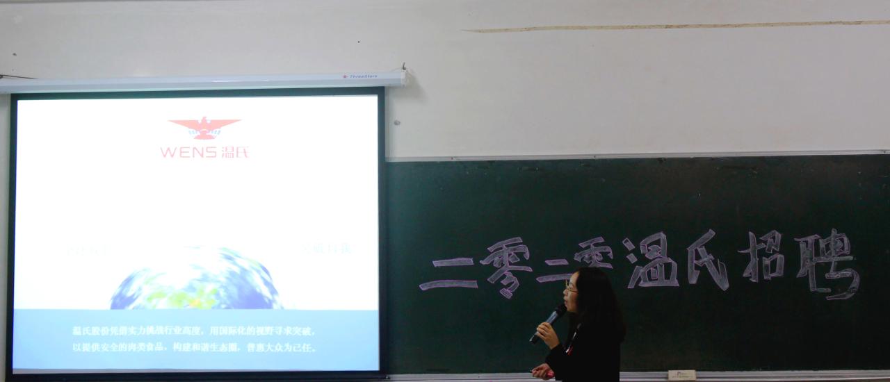 10月14日19点,温氏集团人事经理施琴用PPT为大一新生和毕业生讲解了传统牧业与现代牧业集团的区别以及集团优势,过去的36年温氏不忘初心,在致力于推进中国农业产业化的道路上奋力前行。随后表明了他们公司的人才需求和工作待遇,愿毕业生成为他们的一份子,愿大一新生努力学习,览前车之鉴。
