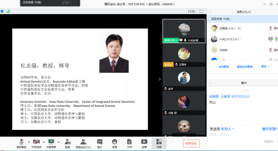 (通讯员:杜晓倩)为充分调动2017级员工考研积极性,让同学们更好的挖掘自身的潜能,帮助员工解答考研可能遇到的问题,了解考研基本流程。公司于5月8日14:00通过腾讯会议召开了2017级考研就业指导,本次会议邀请主讲人为动物科学系系主任杜志强教授,全体17级动科院员工参加了会议。