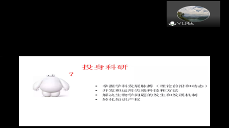 首先,杜志强教授从简单的自我介绍中引出科研,解释科研是什么?并提出投身科研应做到:了解前沿;掌握尖端科技和方法;懂得解决生物学问题的发生和发展机制;学会转化知识产权,并强调了解大数据是投身科研的前提。随后对新知识与新能力进行了说明,提醒同学们应跟上时代发展,获取新知识,杜老师还强调书本上的知识永远是旧的知识。