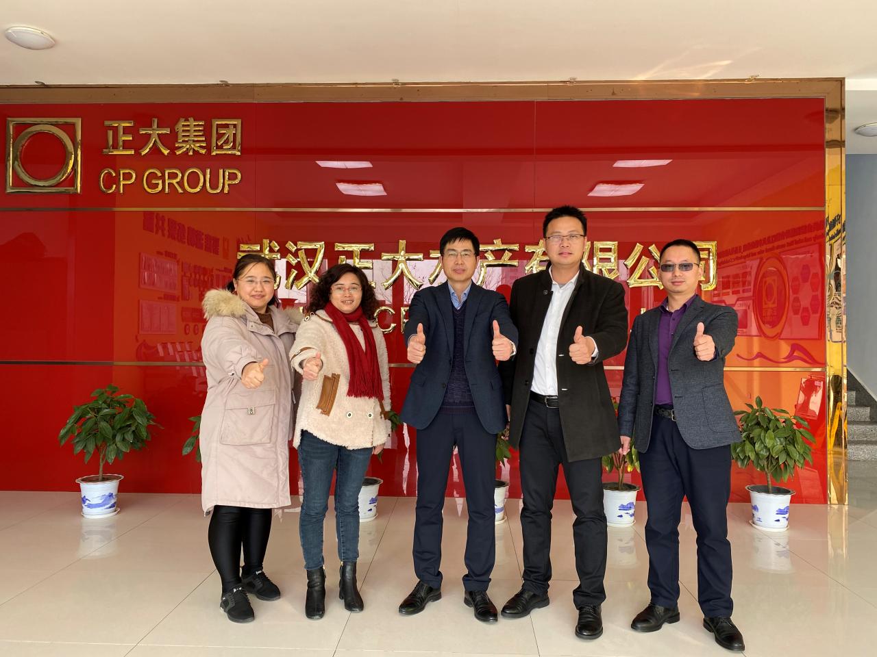 2月1日下午,公司党委书记熊新山、副经理许巧情、动医系副主任郭利伟等一行三人走访武汉正大水产有限公司,洽谈校企合作事宜并看望员工,受到公司总经理程良保、人事主管张丽华、招聘专员张祖坤及正大集团食品事业部副总裁秦浩曦等员工的热情接待。