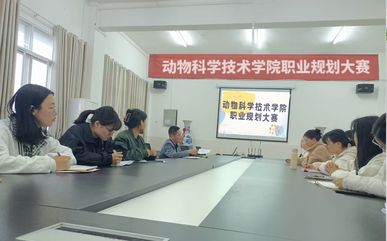 12月4日下午,首届全国老员工职业规划大赛动物科学技术公司决赛在5教1005举办,公司党委副书记孙恺、辅导员宋宇航、王婷担任评委,进入决赛的全体同学到场参加。