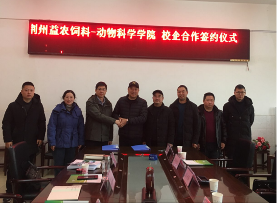 11月29日上午,动物科学公司与荆州益农饲料有限公司校企合作签约仪式于五教807举行。公司党委书记熊新山,公司党委副书记苏晓云,水产系主任罗鸣钟,荆州益农饲料有限公司董事长鲁开新,财务总监文陈杨、技术总监冯高文共同参加了本次签约仪式。