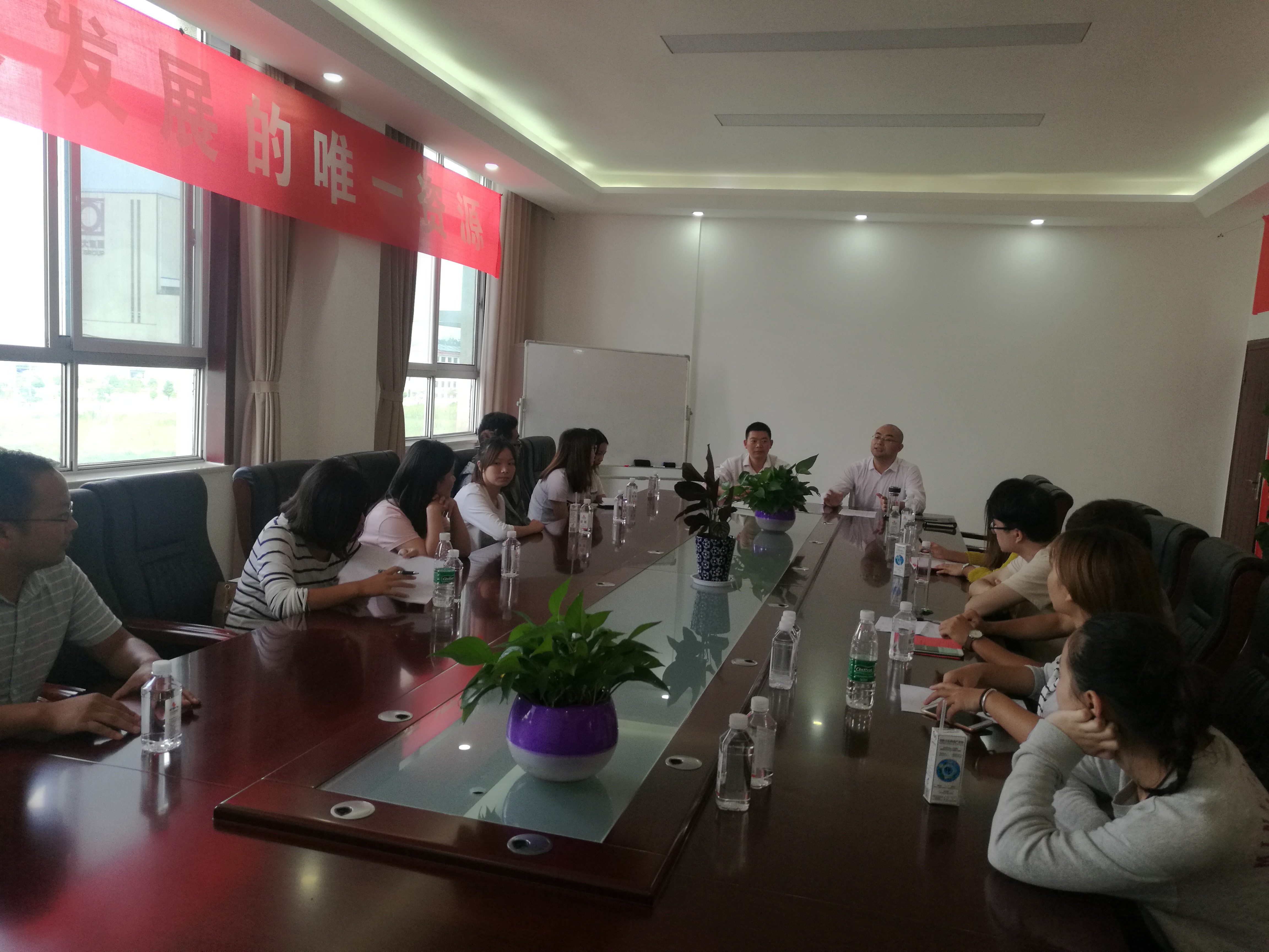 晚上7:00,在喜鹊湖农庄会议室,召开师生交流座谈会,座谈会由许巧情副经理主持。同学们踊跃发言,分享了大学的收获、分析不足及对未来的思考,希望珍惜老员工活,提升走向社会的竞争力。王家乡老师建议同学们首先认识自己,给自己定好位,制定自己的奋斗目标和人生规划。王雨副书记在发言中讲到本次座谈会正值毕业生选择考研还是就业的抉择期,希望考研的同学积极备考,争取取得好成绩,希望本科就业的同学,积极参加招聘会,选择好自己的就业方向;