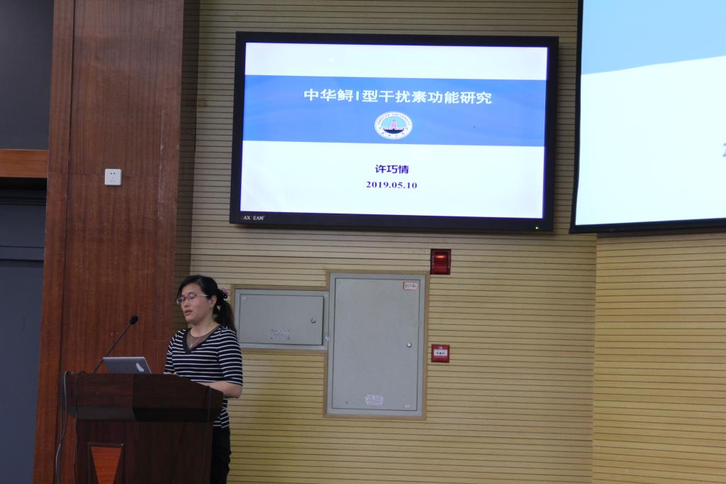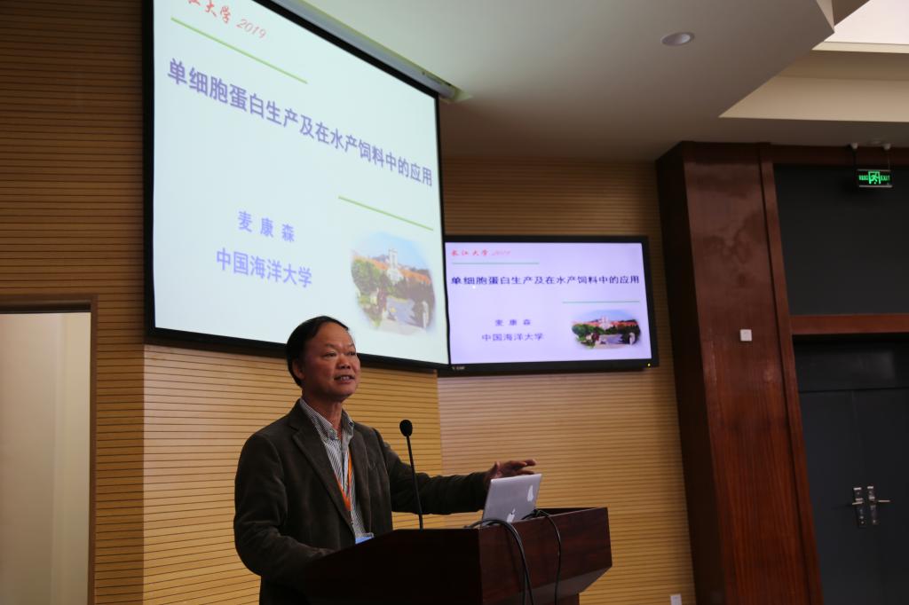 会议共有12位专家做了精彩的学术报告,深入探讨了水生动物营养与免疫的前沿进展,阐明了水生动物营养需求、水生动物免疫应答机制及其与病原的互作关系,推动了营养学和免疫学在水产健康养殖实践上的应用。会上麦康森院士做了题为“单细胞蛋白生产及在水产饲料上的应用”的报告。聂品研究员等多位专家在本次会议上介绍了自己最新的研究成果。英国365集团网站动物科学公司许巧情教授做了“中华鲟I型干扰素功能研究”的报告,从中华鲟作为濒危保护动物幸存数量、疾病和免疫研究现状、进化地位等角度阐述了中华鲟保护的重要意义,并分享了近两年来课题组关于中华鲟干扰素的研究成果。