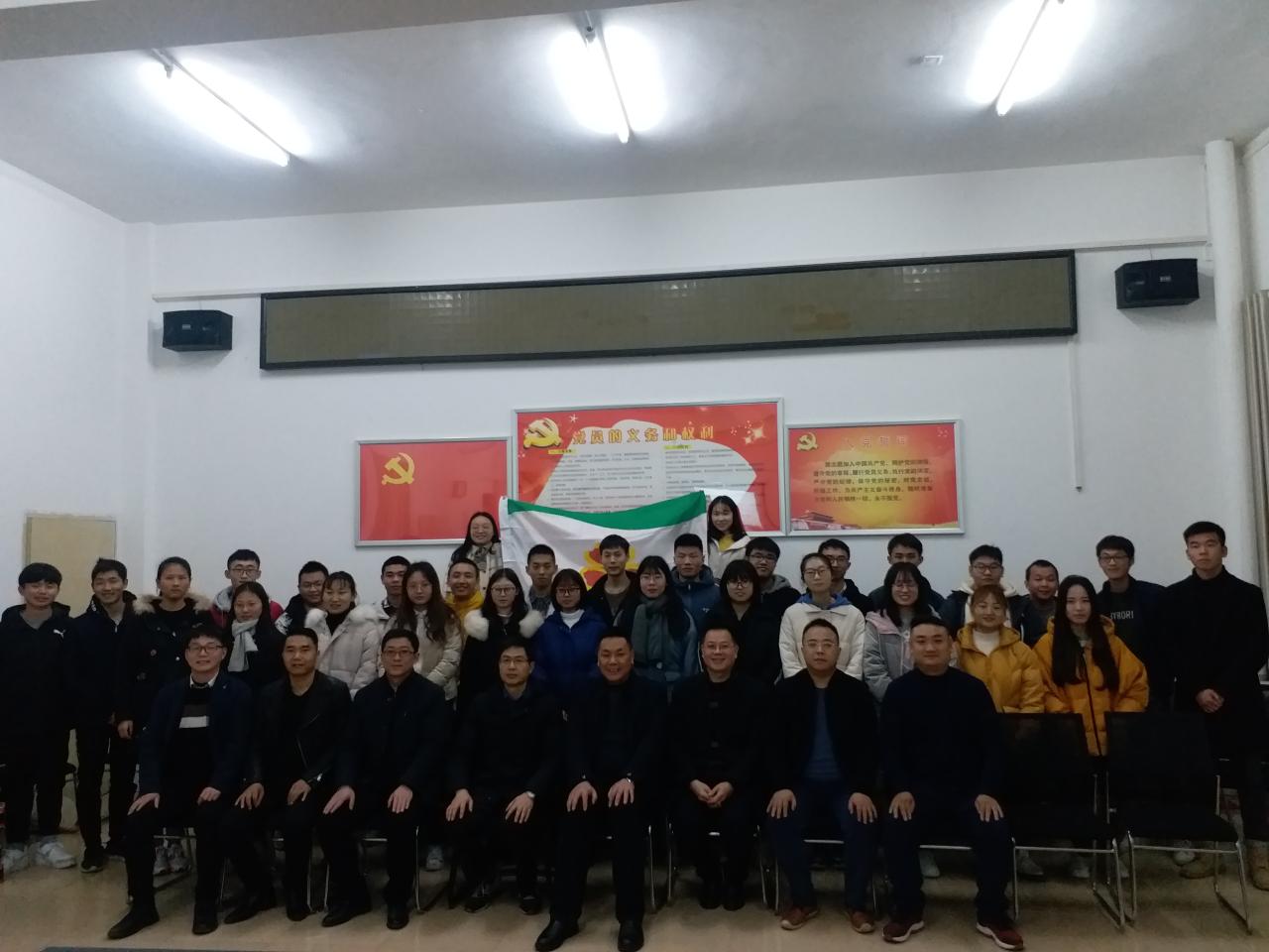 随后由班长杨艳林作员工代表发言,张必军总裁进行授旗仪式,与班委完成交接后全体参会人员合影。