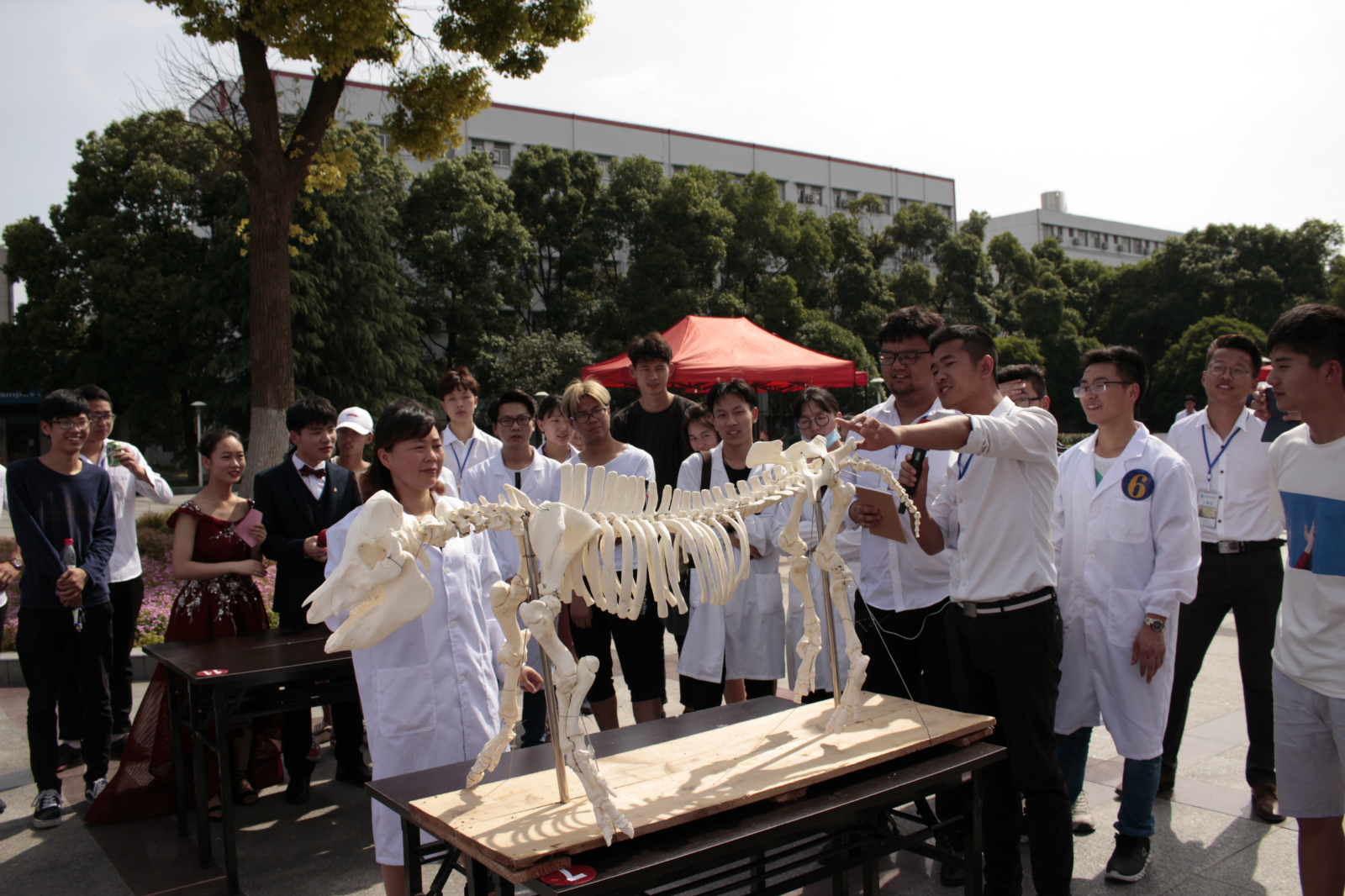 第一场比赛为非专业组,由动物科学公司、生命科学公司、医公司、文公司以及文理公司的12位参赛选手组成。12位参赛选手均在规定时间内完成了解剖,随后由评委依次进行提问和打分。在评委点评后,王家乡老师为现场观众讲解了猪骨骼标本,15级向丹展示并讲解了她和团队成员宋燕玲、王艺共同制作的水族箱。通过两场讲解使现场观众对公司的专业学习有了进一步的了解。
